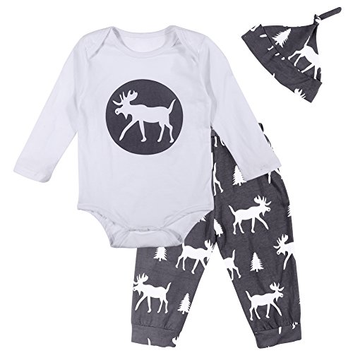 MIOIM® 子供服 ロンパース ズボン 帽子 3点セット プリントTシャツ&ロングパンツ セットアップ ベビー 子供 ベビー服