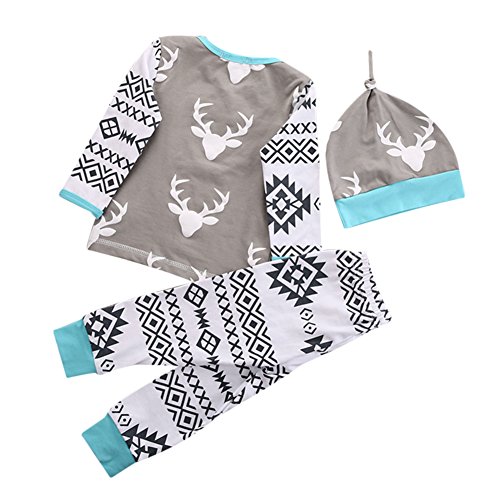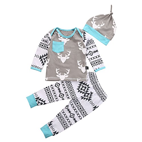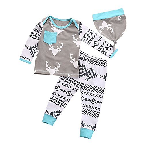MIOIM® 子供服 メリクリスマス シャツ ズボン 帽子 長袖 3点セット鹿柄 プリント Tシャツ&ロングパンツ セットアップ ベビー服