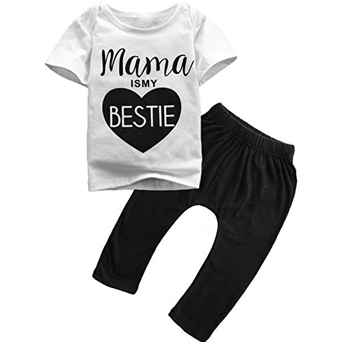 MIOIM® パンツ ジャージ セット 女の子 男の子 子供服 上下セット 半袖 ガールズ キッズ 2点セット 英字 プリント ホワイト ブラック