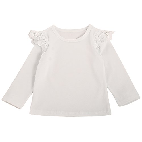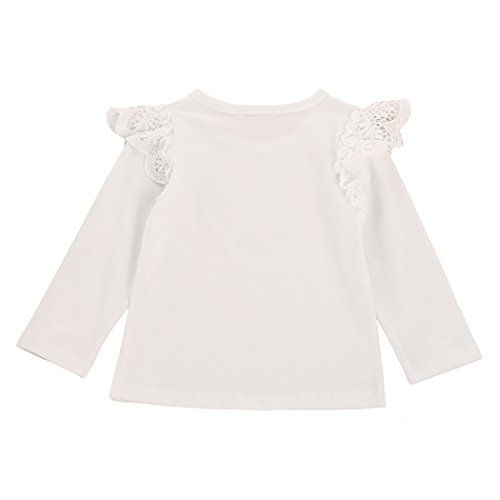 MIOIM ガールズ キッズ Tシャツ レース柄 飛ぶ スリーブ 長袖 子供服 カジュアル 丸首 ゆったり トップス 通学 通園 普段着にも プライマーシャツ
