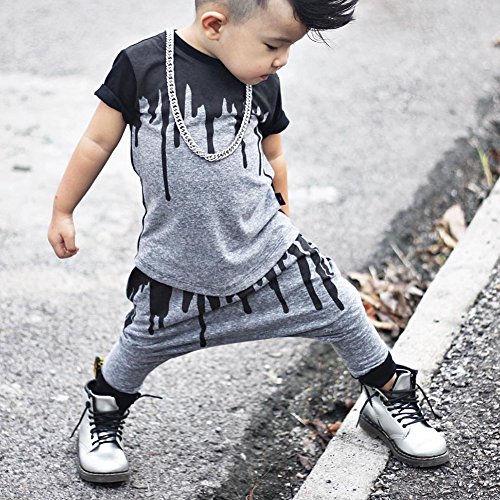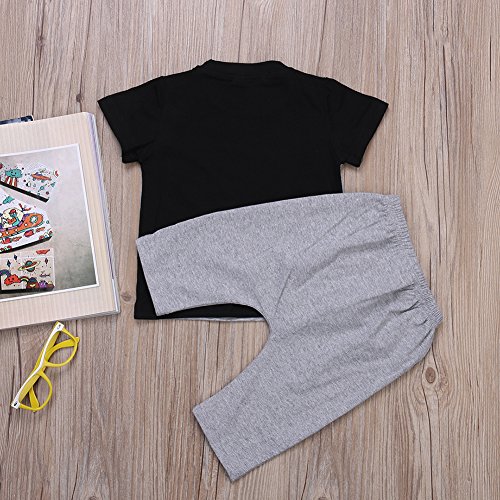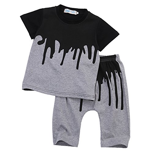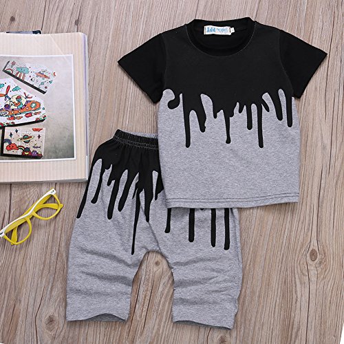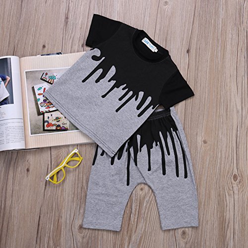 - ブラックとグレーのプリントがかわいい Tシャツ+ハロンパンツの上下セットでございます。