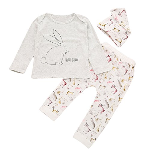 mioim ベビー服 英字 兎 長袖 Tシャツ ロングパンツ 2セット シャツ トップス ズボン 上下セット 男の子 女の子 70 80 90 100(100CM)