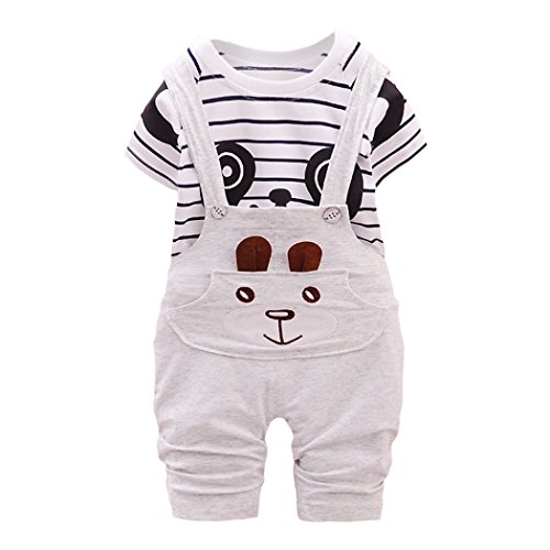 MIOIM ベビー服 セットアップ サロペット オーバーオール Tシャツ 2セット 可愛い パンダちゃん ストライプ柄 春夏 出産お祝い プレゼント