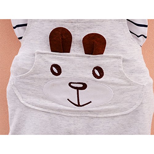 ベビー服 女の子 男の子 上下セット キッズ 赤ちゃん 丸首 ストライプシャツ+オーバーオール ストライプクマ 長袖 春秋 出産祝い