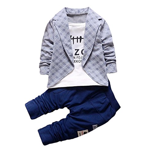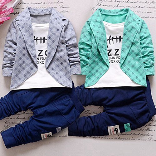 MIOIM ベビー服 長袖 t シャツ レジャースーツ ロングパンツ フォーマル カジュアル 上下セット 2点セット 正装的な感じ 男の子 洋服 夏秋服 80 90 100 110 (グレー, 90CM)