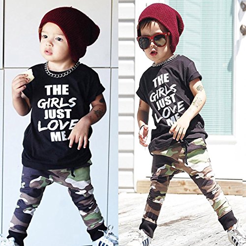 MIOIM ベビー服 子供服 二点セット 男の子 迷彩服 半袖 ロングパンツ 上下セット 可愛い オシャレ スポーツ 運動会 夏 秋 歩行服 出産お祝い