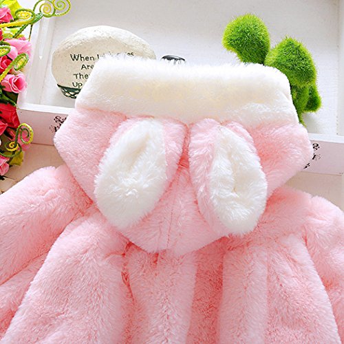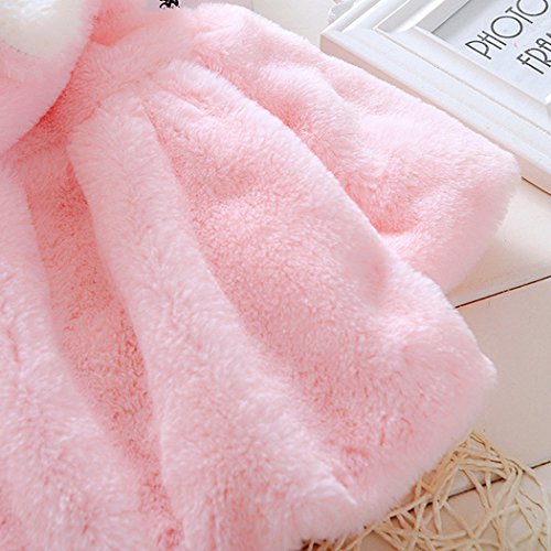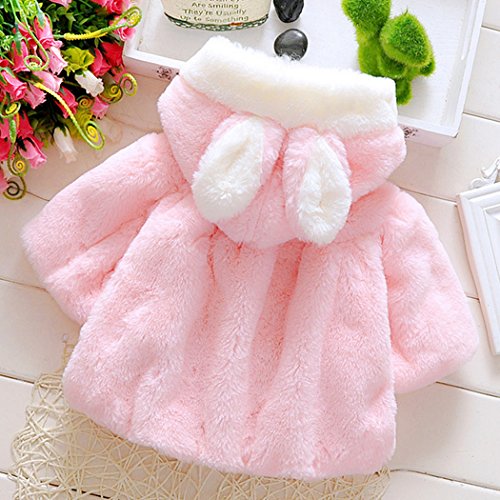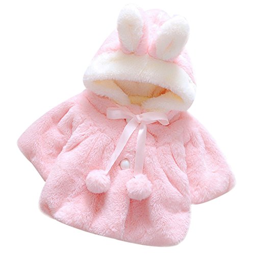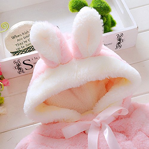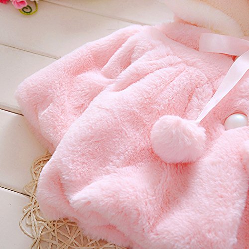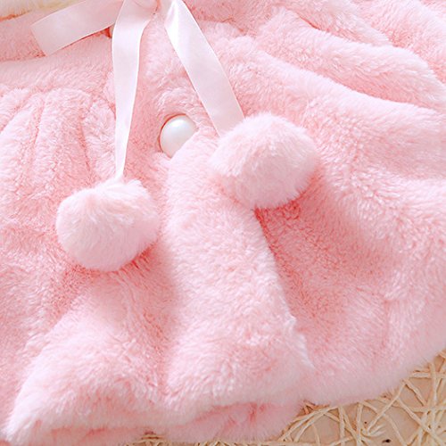 MIOIM ベビー服 女の子 無地 コート キッズ ウザギ フード付き マント ふわふわ ポンポン ボタン アウター 暖かい 新生児 保温 冷房 防寒対策 宴会 披露宴 結婚式
