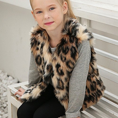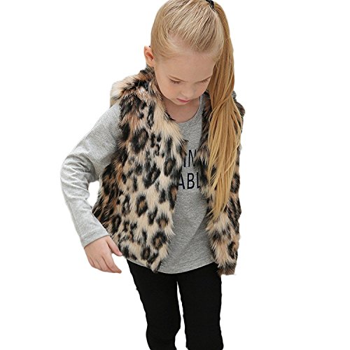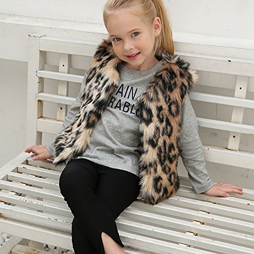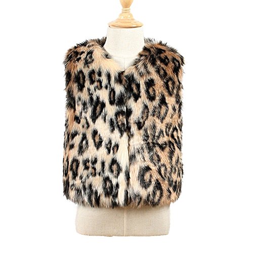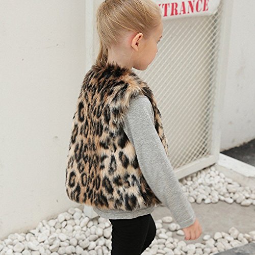 mioim ベビー服 ファー ベスト キッズ 女の子 秋 冬 防寒コート ショート 無地 フェイクファー アウター 毛皮 袖なし (豹柄, S)