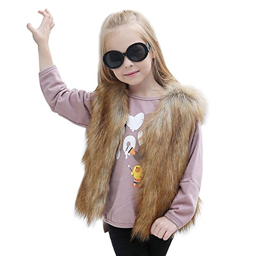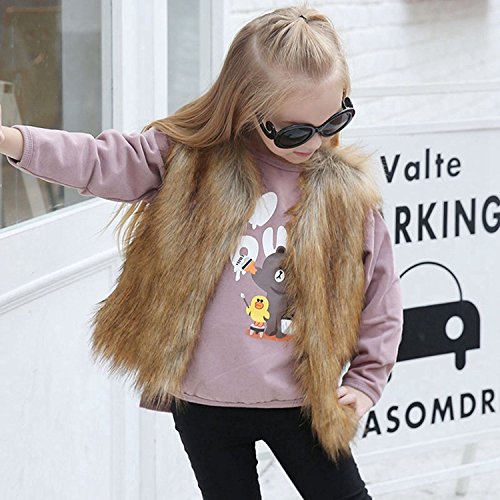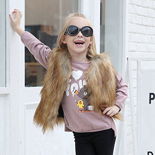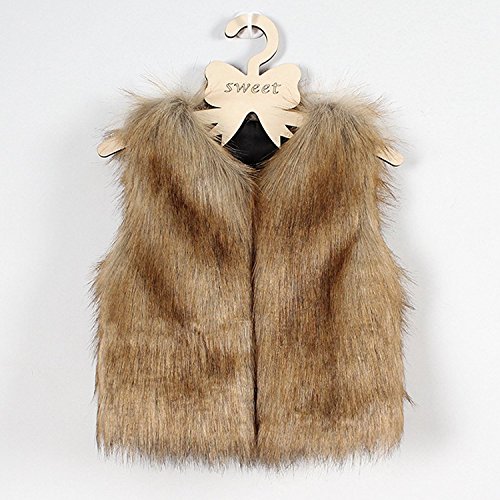 mioim ベビー服 キッズ ファー コート ベスト 冬服 女の子 フェイクファー もこもこ 毛皮 大人っぽい 可愛い 秋 冬 防寒 チョッキ (カーキ, XL)