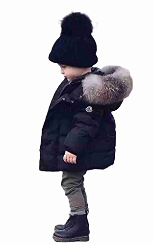 MIOIM ベビー服 コート 男の子 女の子 フェイク ファー アウター 暖かい 可愛い 秋 冬 ダウン ジャケット キッズ 保温 綿服 帽子付き (100CM, ブラック)