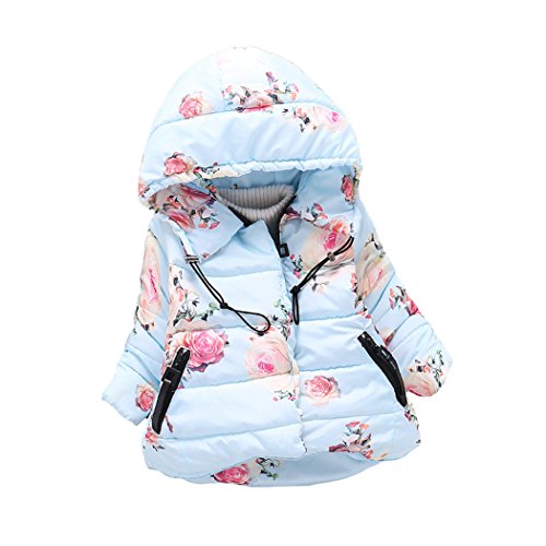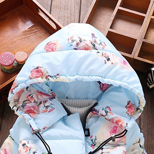 mioim ベビー服 子供服 女の子 コート 長袖 フード付き 秋冬 ダウン ジャケット 防寒 アウター 上着 花柄 赤ちゃん 綿服 普段着 70 80 90 100 (ブルー, 80CM)