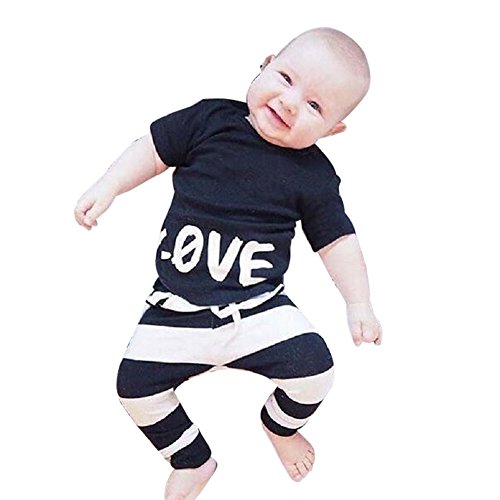 MIOIM 英字ロゴ love 子供服 ベビー服 シャツ ロングパンツ 上下セット かわいい 男女兼用 ボーダー lovely baby おしゃれ 欧米風 大ブーム