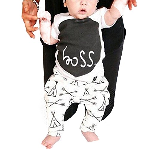 MIOIM キッズ 2セット ベビー BOSS 英字柄 Tシャツ ロングパンツ セットアップ 男の子 女の子 上下セット 半袖 子供服 ホワイト