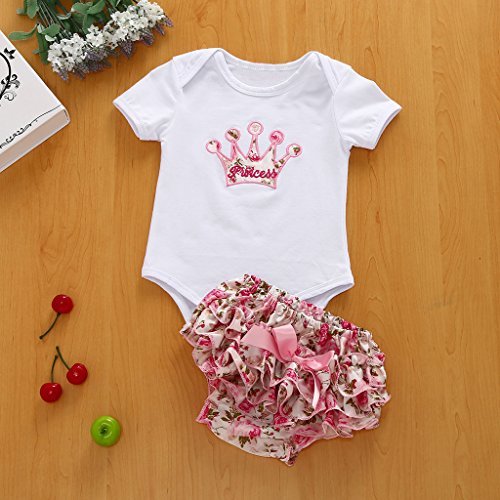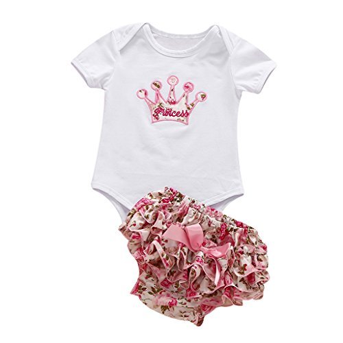 MIOIM女の子新生児ベビー2刺繍クラウンロンパーストップスフリルショートパンツ服装 カラー: ホワイト
