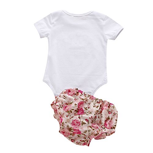 - クラウンの刺繍がベビー女の子半袖ロンパースワンジーフリル花柄のショートパンツの一式セット