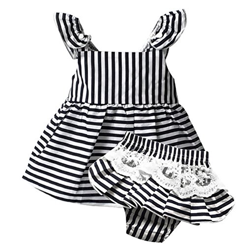 MIOIM 子供服 キャミワンピース 女の子 ガールズ ボーダー柄 プリーツスカート ミニドレス パンツ 上下セット ベビー ブラウス