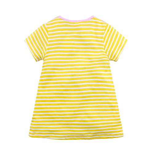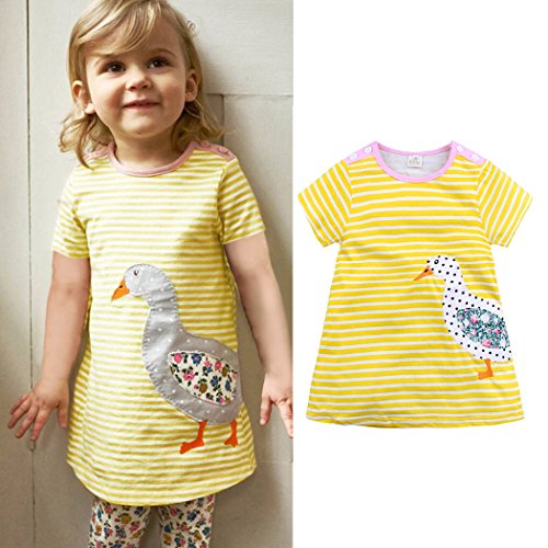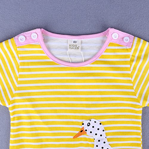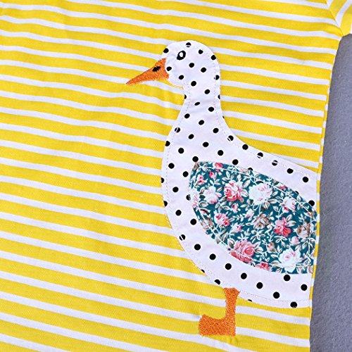 MIOIM ベビー服 女の子 ワンピース 半袖 ストライプ柄 動物柄 アヒル イエロー 可愛い 夏秋 旅行 記念日 プレゼント 子供服 パジャマ 1-6歳