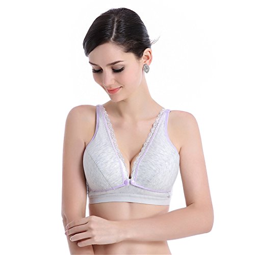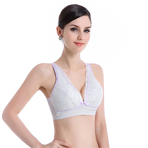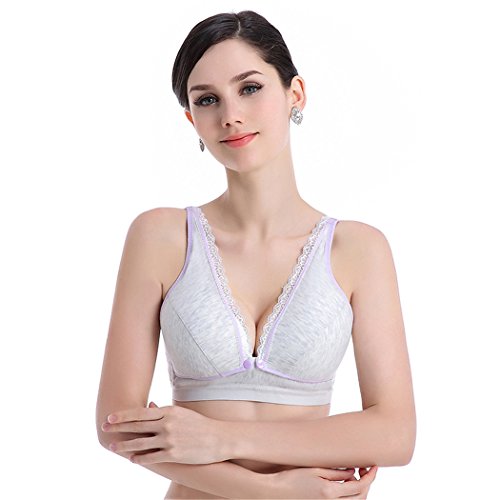 mioim 授乳ブラ 授乳ブラジャー 下着 授乳対応 前開き ノンワイヤー 産前産後兼用 赤ちゃん 乳児 も安心 乳首 隠せる 矯正 调整 垂れない 揺れない 優しい綿 (M, パープル)
