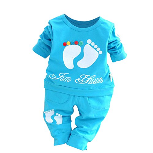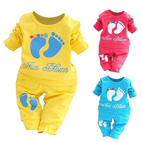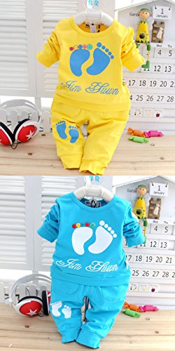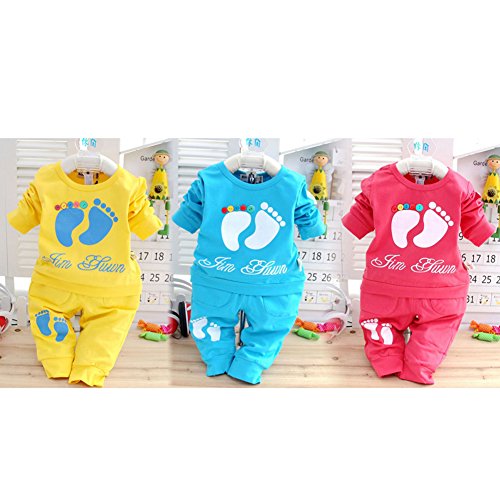MIOIM ベビー 上下 セット 青 赤 黄色 足跡 綿 かわいい シャツ ズボン 女の子 男の子 子供 73 80 85 90