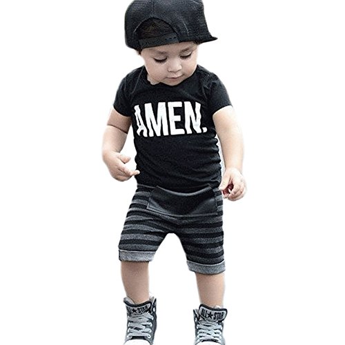MIOIM 子供服 上下セット 半袖 Tシャツ ハーフパンツ ハロン パンツ かっこいい キッズ 男の子 横縞 ズボン 英字 シャツ