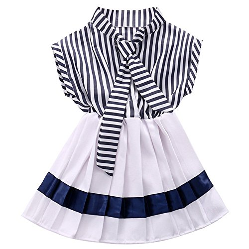 MIOIM 女の子 子供 ボーダー ワンピース セーラー服 プリーツ スカート カー軍風 かわいい ドレス