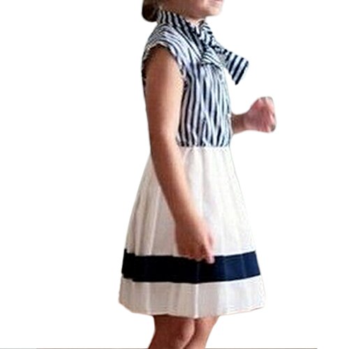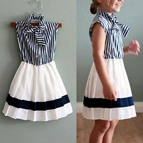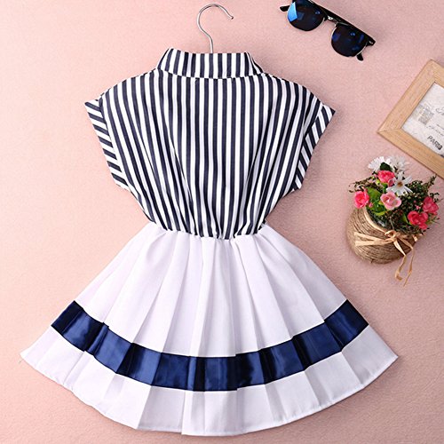 MIOIM 女の子 子供 ボーダー ワンピース セーラー服 プリーツ スカート カー軍風 かわいい ドレス