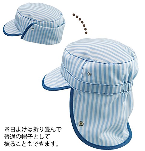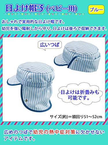 帽子 日よけ付 ベビー ブルー ストライプ 頭回り約51 ~ 52cm
