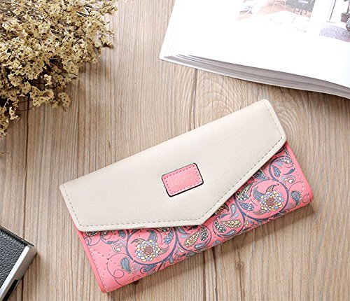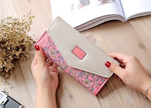 MISS LIN 財布 レディース用 長財布 小銭入れ 札入れ 写真入れ 大容量 多機能 サイフ シンプル 上品 優雅 5色入荷 (ピンク)