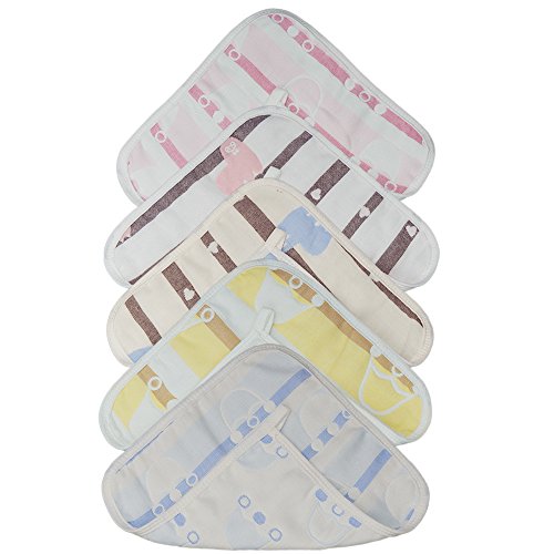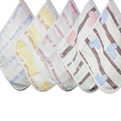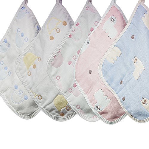 MIUSE ガーゼハンカチ 6重ガーゼ タオル ベビーハンカチ 柔らかい 肌触り 子供 新生児ハンカチ ループ付き 100%綿5枚セット (グループ2)