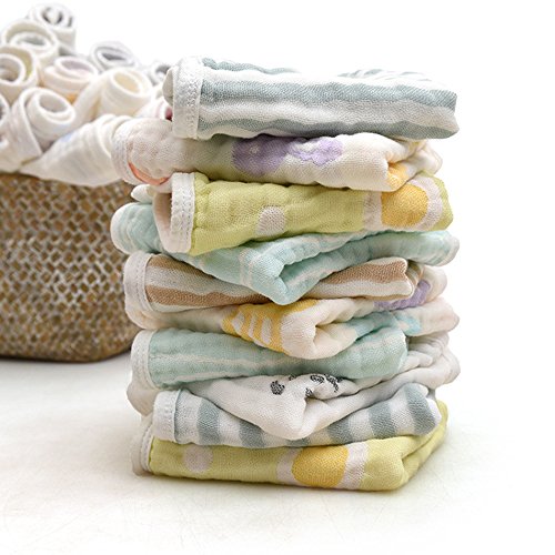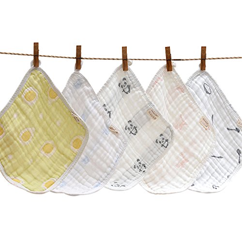 MIUSE ベビーガーゼハンカチ 6重 新生児ハンカチ フェイスハンカチ 赤ちゃんタオル 良い肌さわり 100%綿 5枚 (画像5枚)