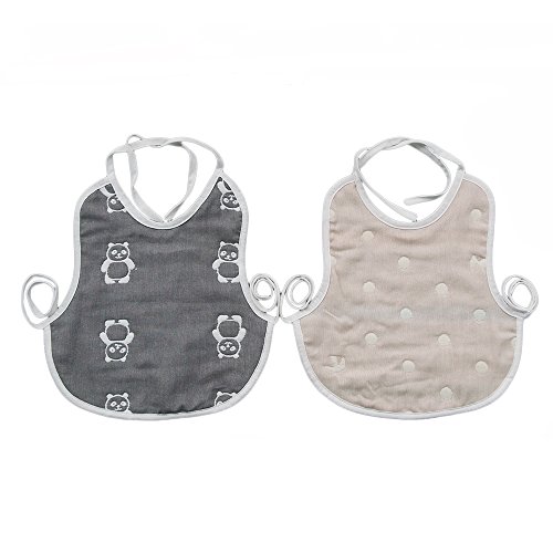 MIUSE ビブ 新型よだれかけ 6重ガーゼ スタイ 食事 多機能 100%綿 良い肌さわり 2枚セット (パンダと丸点2枚)