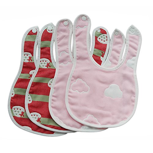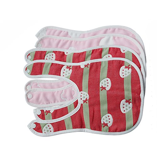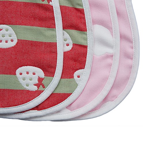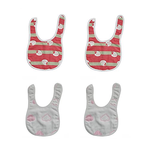 MIUSE ベビーよだれかけ 6重厚さガーゼ ビブ スタイ 食事 100%綿 出産祝い 保育園用 家用 4枚セット (U苺と雲4枚)
