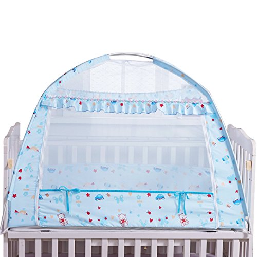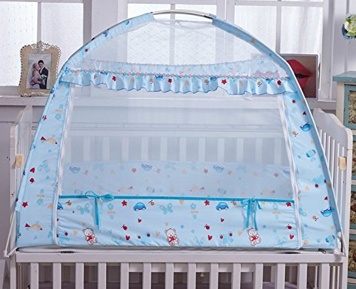 ベビー蚊帳 通気性 蚊や虫の侵入を防ぎ 真夏の夜も安眠 蚊帳 カヤ ベビー用品 可愛い 折畳み 高品質 組立式 虫除け (ブルー)
