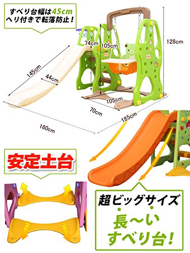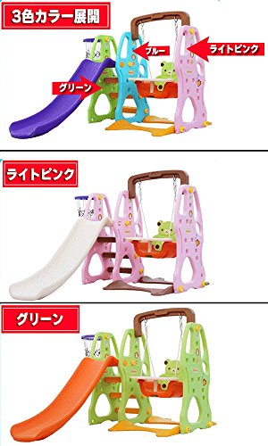 大型遊具 子供用 ブランコ 滑り台 (3色(ライトピンク+グリーン+ブルー))