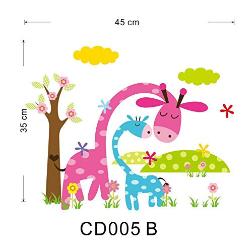 MLM Giraffe Flower Sun Tree Removable Wall Stickers for Kids' Room Home decor zoo Decals children cartoon wall art DIY [並行輸入品]