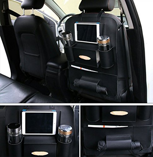 2パックPUレザー車Backseat Organizer、mlovesie旅行ストレージプロテクターの子供おもちゃのボトル携帯電話iPadタブレットティッシュボックス傘 ブラック ML-STCR022 bk