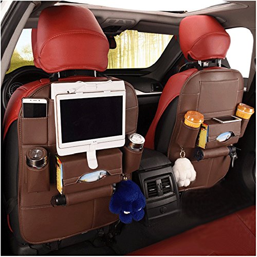 - 耐久性のある二層PU(ポリウレタン樹脂)、耐傷性、防水、車両に対する防塵性 (乗用車、トラック、SUV、バン、ミニバン)。特徴は、マルチポケット、豪華なipadタブレットポケット、カップホルダー、傘ポケット、吊り下げフック2か所、ティッシュボックスポケット、予備の衣類と子供の本用収納2か所。