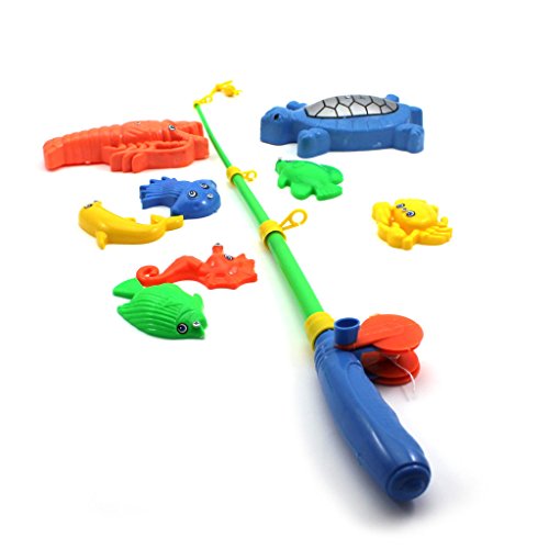 - パッケージ内容: 一つのプラスチック釣り竿、8海洋生物と長さ調節可能ライン、磁気とフック