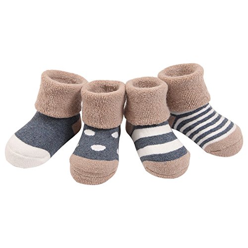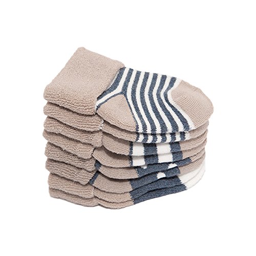 4ペア 赤ちゃん着 冬着靴下 ウォーマー 暖かい 厚い テリーコットンストライプドットソックス デニムブルー Mサイズ