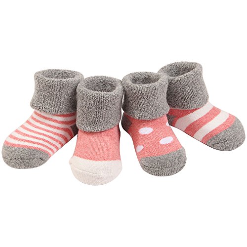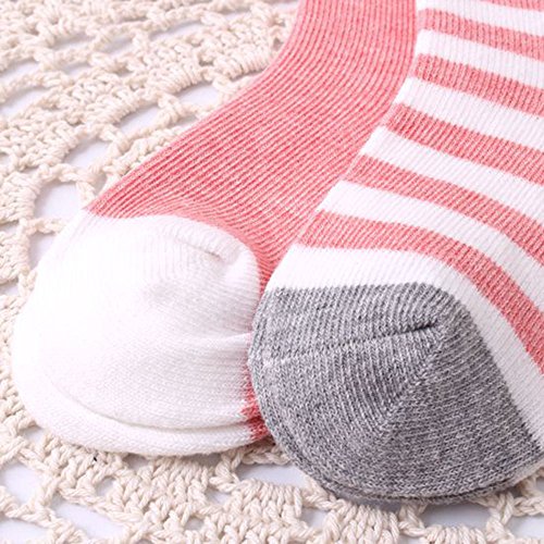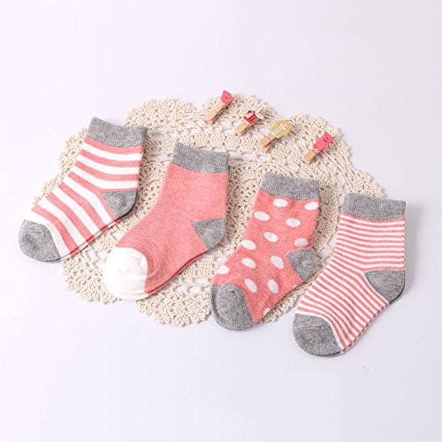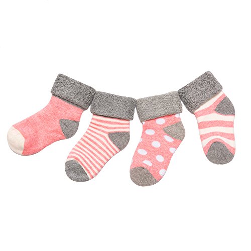 4ペア 赤ちゃん着 冬着靴下 ウォーマー 暖かい 厚い テリーコットンストライプドットソックス 水ピンク sサイズ