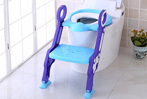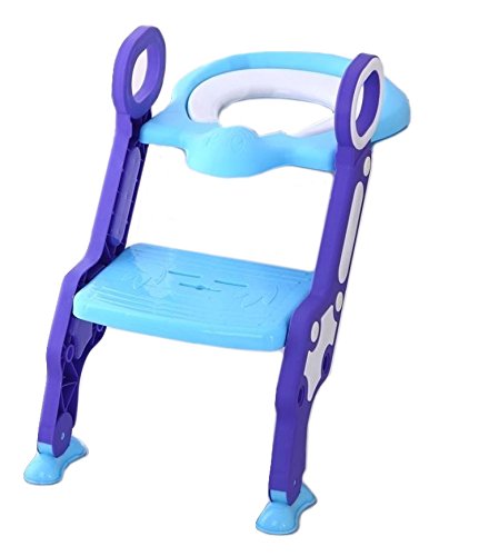 MMTT トイレトレーナー 子ども用 ステップ付 やわらか便座 (ブルー/パープル)