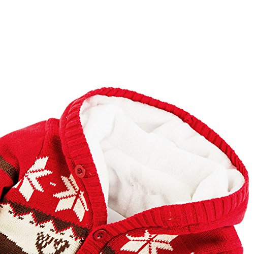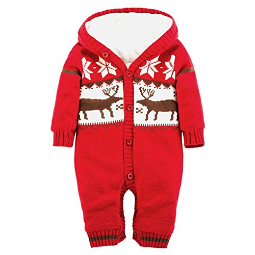 MNBS ベビー服 キッズ服 クリスマス 鹿 雪花 可愛い 子供 ニットキルト ボーダー前開き 長袖 カバーオール セーター 女の子 男の子 レッド 66cm