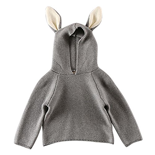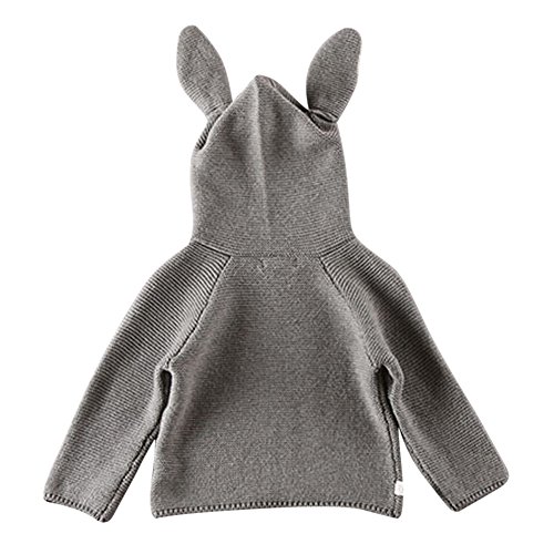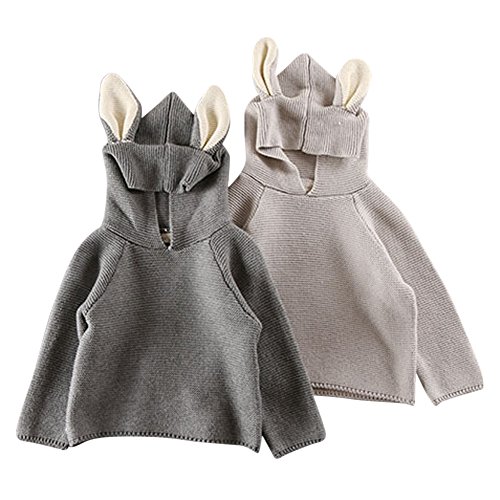 MNBS ベビー服 キッズ服 可愛い 子供 長袖 ニット セーター 女の子 男の子 カットソー トップス プルオーバー カワイイ うさぎ耳 帽子付き グレー 120cm