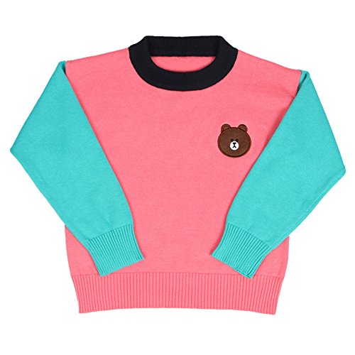 MNBS キッズ ニットセーター カットソー 子供服 男の子 女の子 丸首 長袖 配色 こども スクールセーター カジュアル 秋冬 長袖 ピンク 80cm