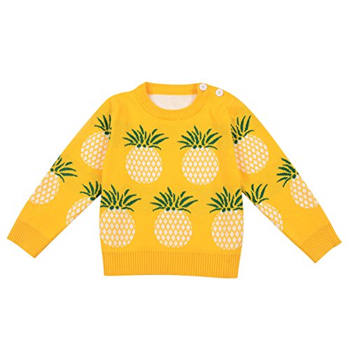 MNBS 子供服 キッズ セーター 男の子 女の子 ニット パイナップルの模様 あったか かわいい カジュアル 秋冬 長袖 カットソー イエロー 90cm