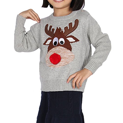 MNBS キッズ ニットセーター クリスマス 鹿の模様 男の子 女の子 子供 長袖 お出かけ カーディガン セーター 遊び着 通学 普段着 通園 グレー 80cm