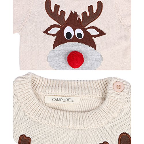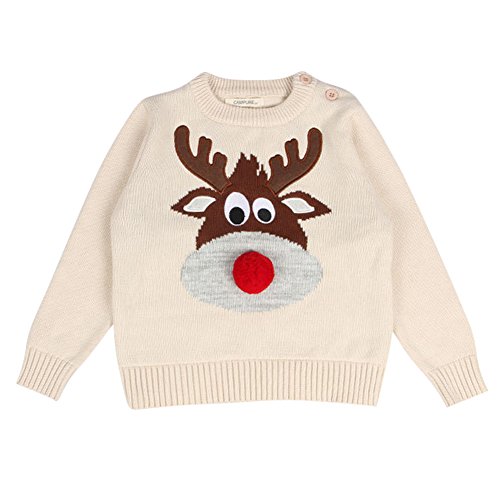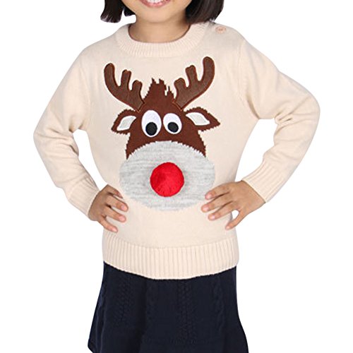 MNBS キッズ ニットセーター クリスマス 鹿の模様 男の子 女の子 子供 長袖 お出かけ カーディガン セーター 遊び着 通学 普段着 通園 ベージュ 100cm