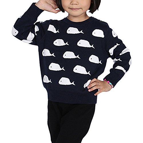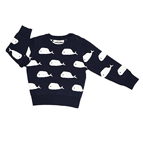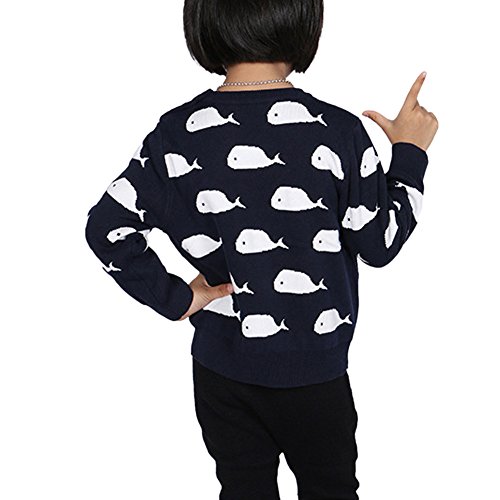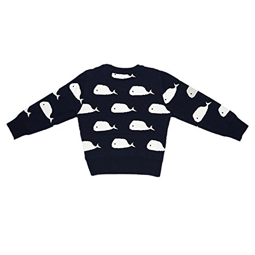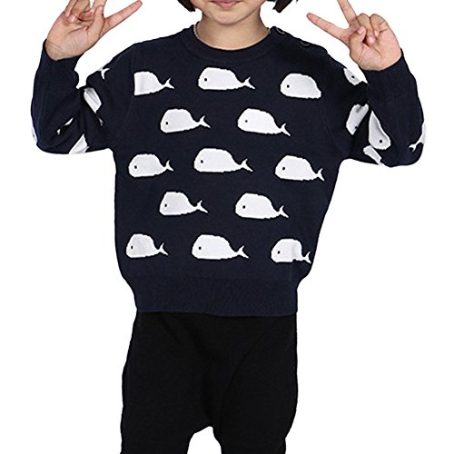 MNBS キッズ服 可愛い 子供 長袖 ニット セーター 女の子 カットソー トップス 男の子 プルオーバー カジュアル カーディガン 丸首 鯨柄 ネービー 90cm