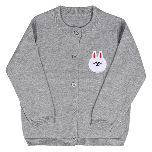 MNBS キッズ コットン製 長袖 80~120size 小学生 ガール 通学 習い事 お祝い ギフト 上品 カーディガン ニット グレー 80cm