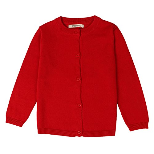 MNBS キッズ コットン製 純色 長袖 80~120size 小学生 ガール 通学 習い事 お祝い ギフト 上品 カーディガン ニット セーター レッド 90cm